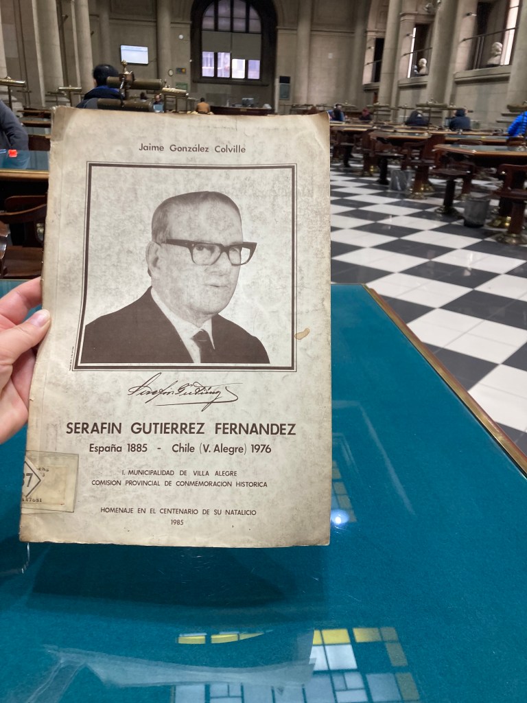 *Una colaboración para Vgrafico.cl de Jaime González Colville, 2023. Del libro Serafín Gutiérrez Fernández, 1985, realizado en homenaje al centenario de su natalicio. Empaste hecho en Talca, portada en Imprenta Delta de esa ciudad, depósito legal en la Biblioteca Nacional. –Academia Chilena de la Historia.